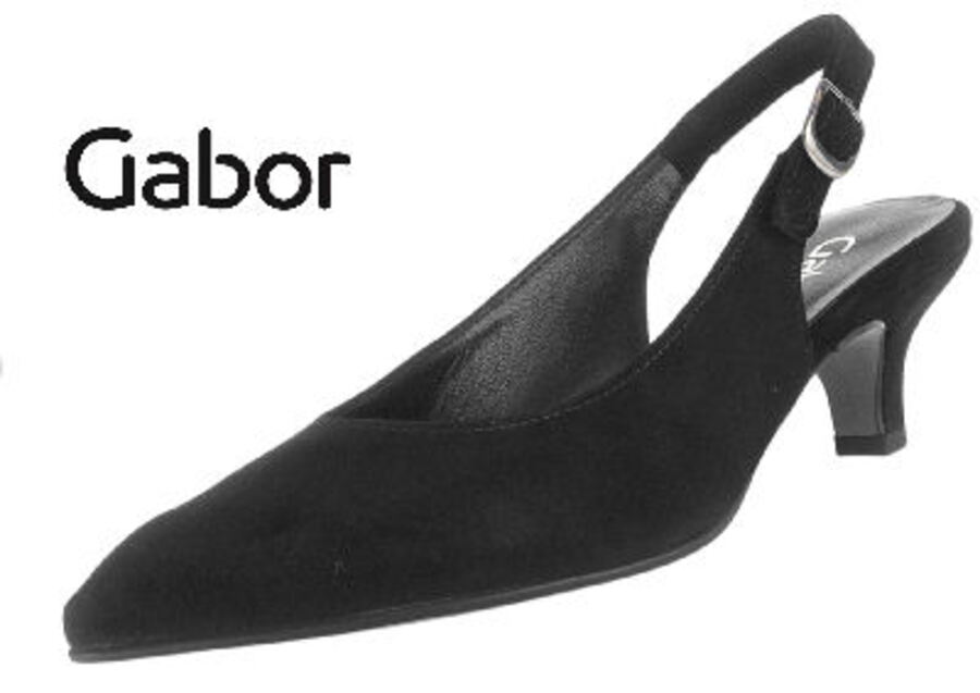 Dress sling-back with 40 mm heel featuring buckle adjustment for a secure fit. Suede upper provides a soft touch, making it practical and comfortable for dress occasions.