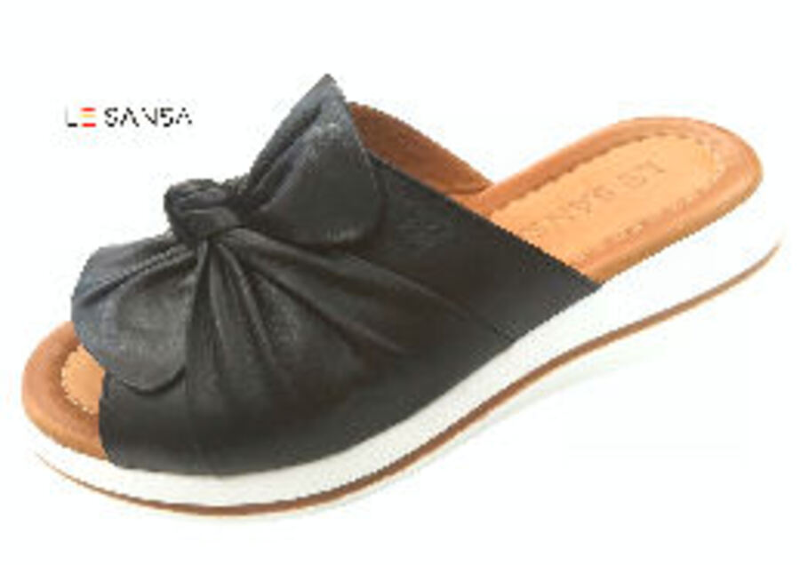 Soft leather full-wrap slide with low wedge sole for easy, comfortable wear. Effortless style that adds a touch of polish to any outfit.
