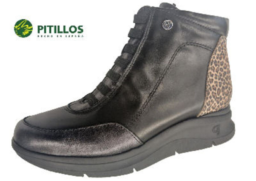Wedge ankle boot with elastic laces and inside zip for easy on-and-off. Features removable insole and lightweight TR sole, designed for comfort and everyday wear.